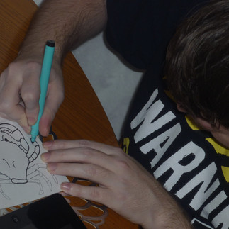 Doorstep was a series of weekly art workshops undertaken over a period of four months in 2020/21 where Cash visited the doorsteps of ‘the Redstarts’ (learning disabled artists) and their family members with weekly art packs to ignite their interest and curiosity into the many ways animals protect themselves from their external world and the predators therein. The aim was for ‘the Redstarts’ to create art in a variety of media, responding to animals exhibited in the Natural History gallery of the Horniman Museum. The animals studied all have naturally different ways of protecting themselves which highlighted the wonders of the animal kingdom and juxtaposed this at a time when we humans are so vulnerable and can only protect ourselves using science and man-made objects.